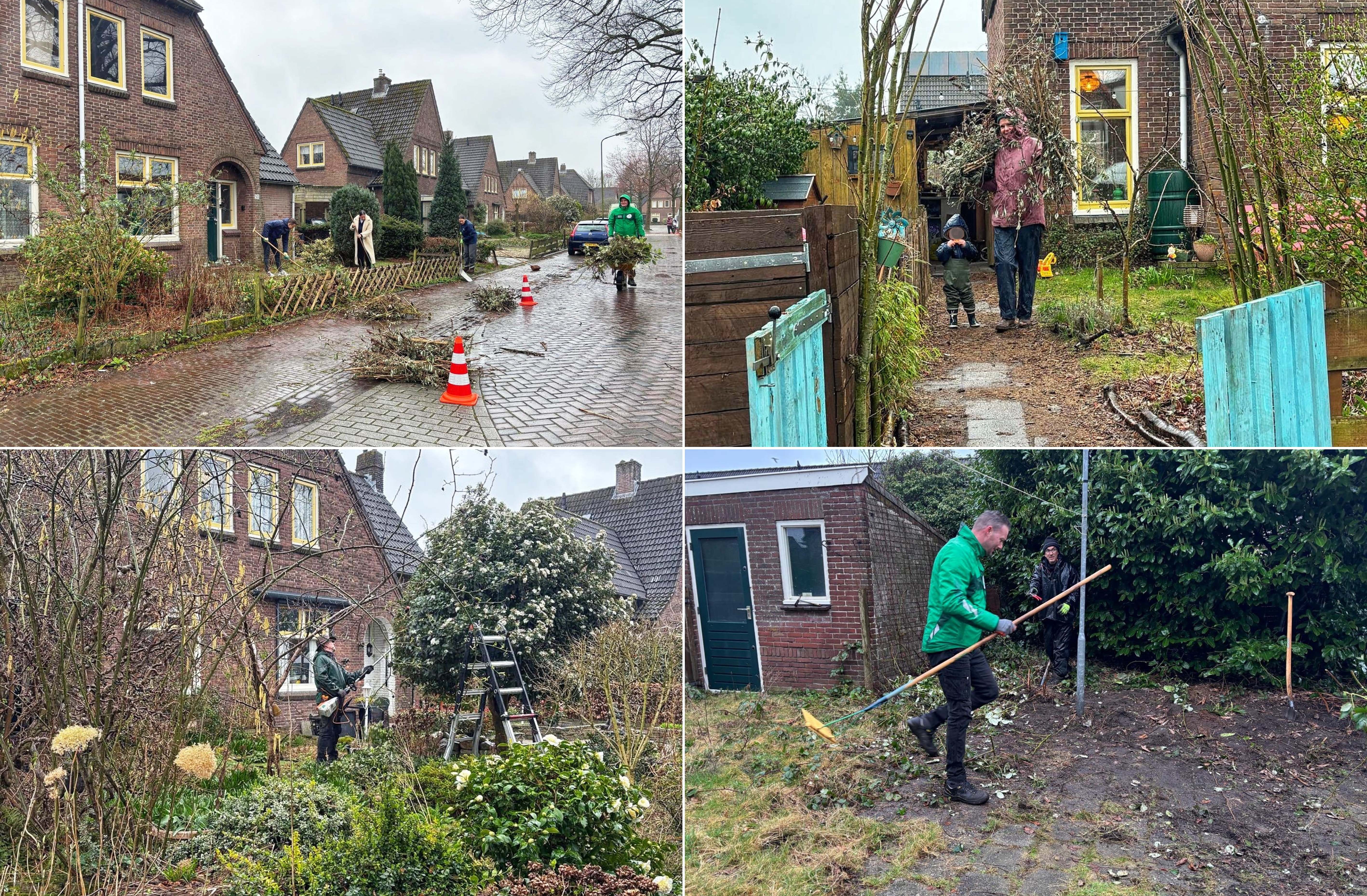Samen met verschillende bewoners, medewerkers van Ad Hoc, gemeente de Bilt, 2 tuinmannen en collega’s van Woongroen hebben we paden schoongeveegd, bomen gesnoeid en gekapt, blad opgeruimd en weer ruimte gemaakt voor het voorjaar!