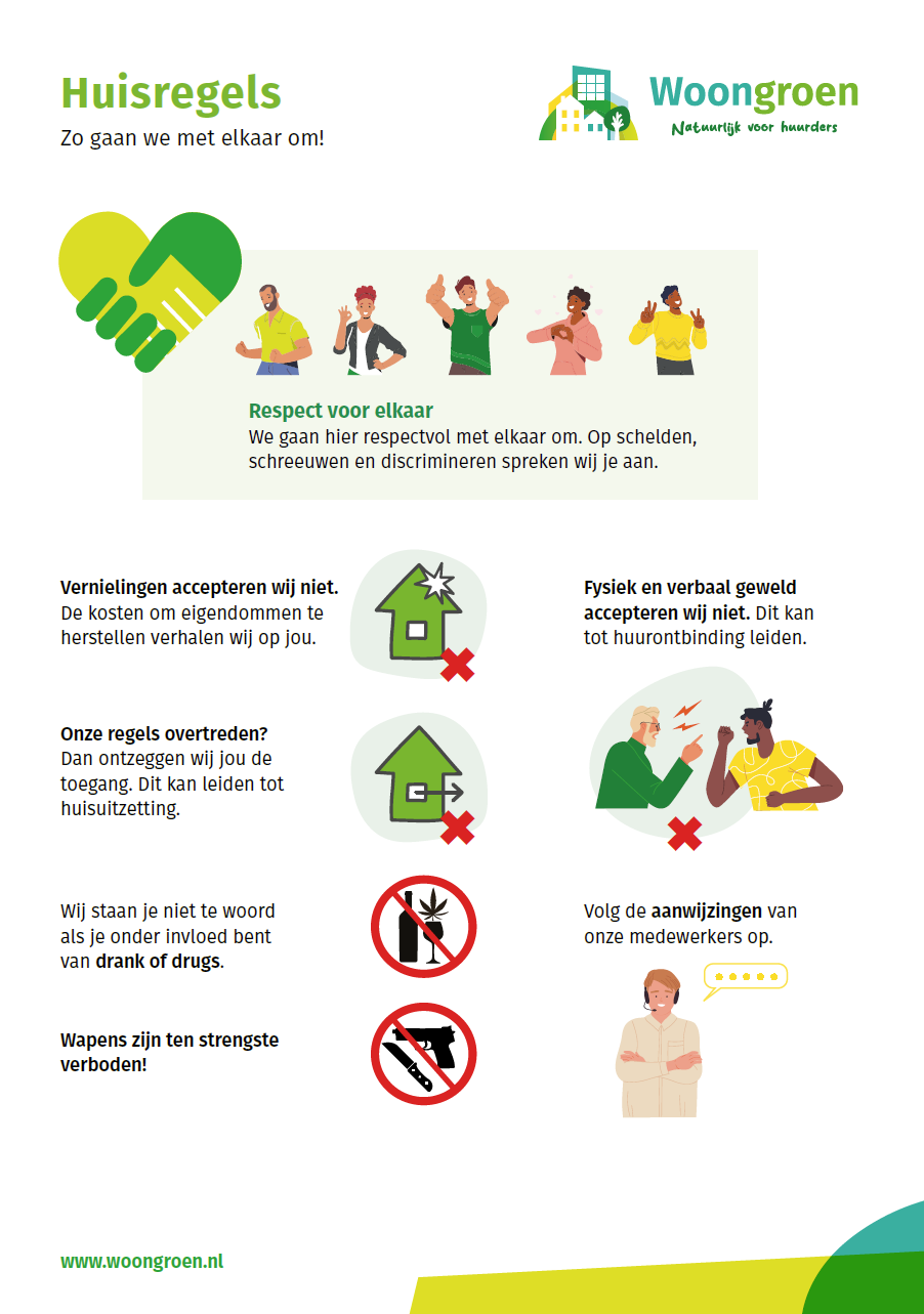 Ga respectvol om met andere huurders, omwonenden en onze medewerkers.